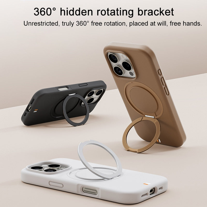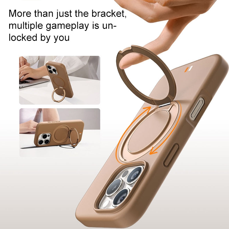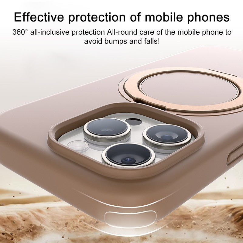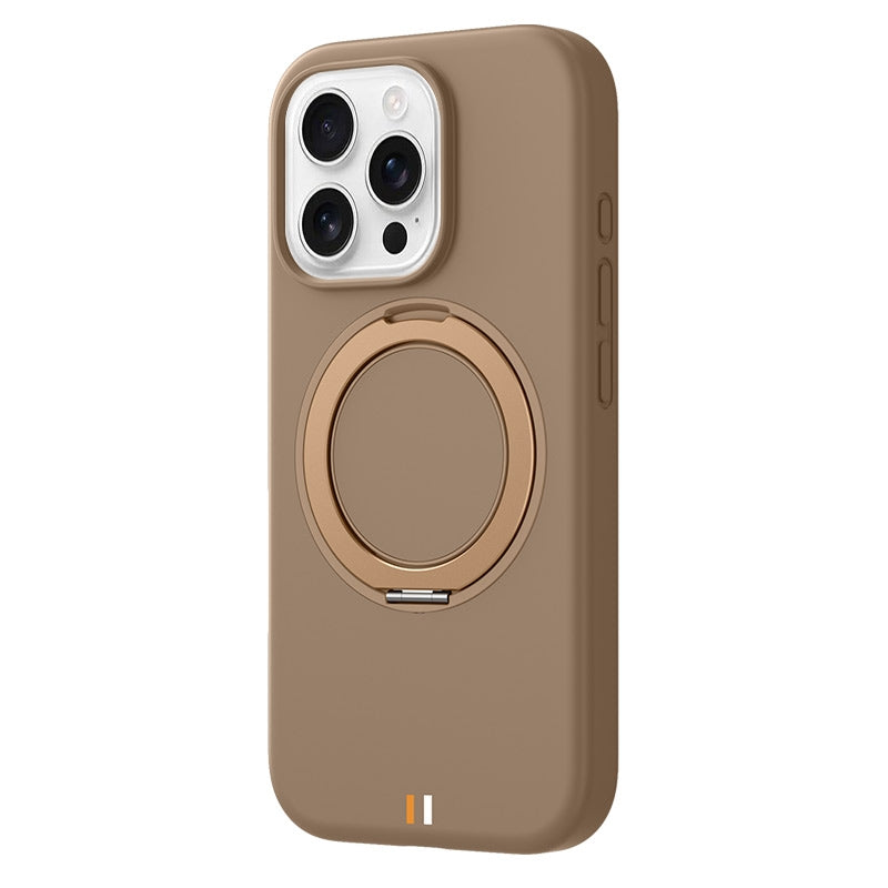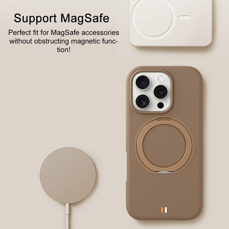 16 PROMAX - TGVIS GEEK Series MagSafe Silicone Phone Case with Rotating Holder(Desert Titanium)