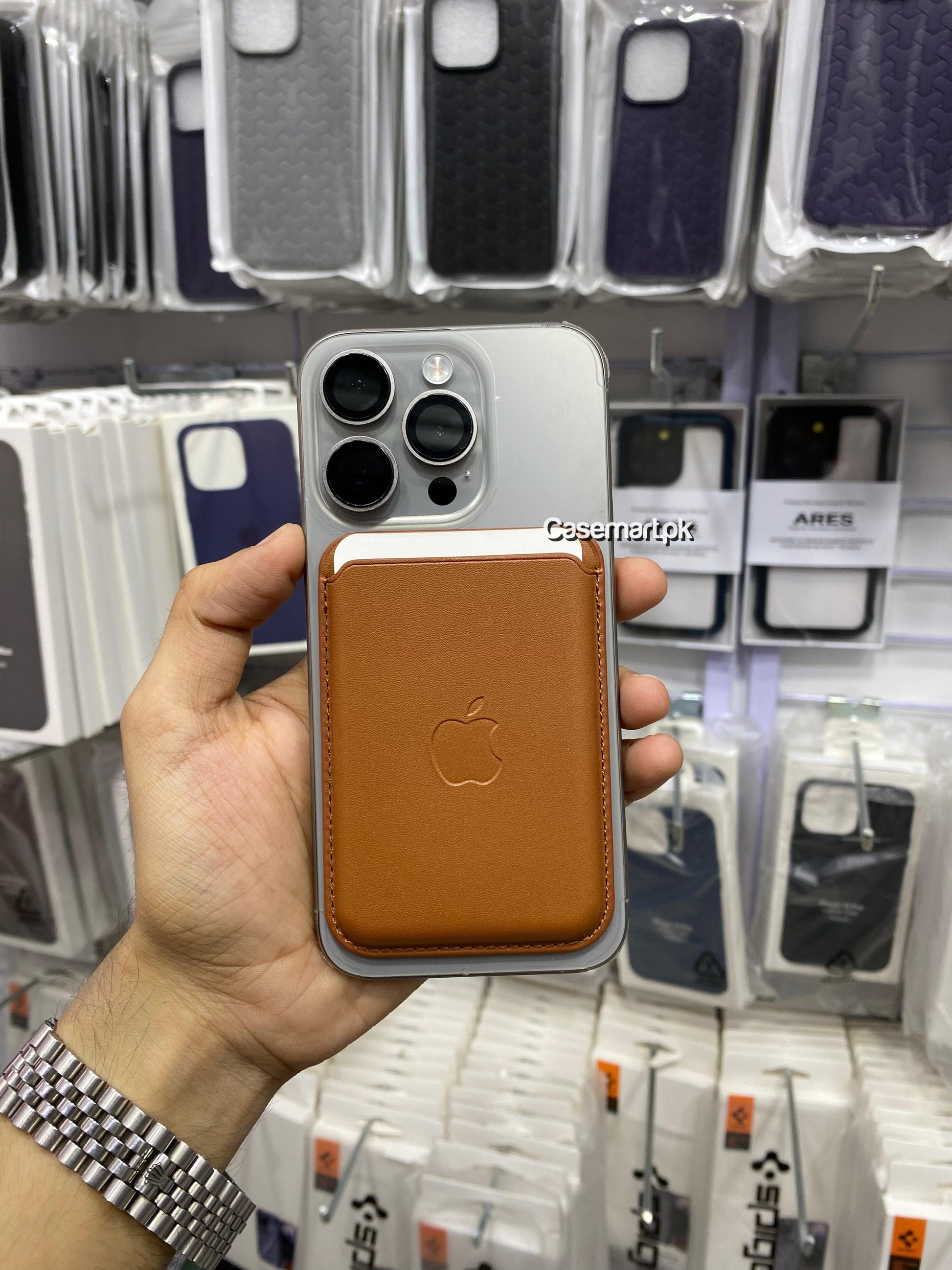 apple magsafe wallet with pop up notification apple 1:1 brown in genuine leather